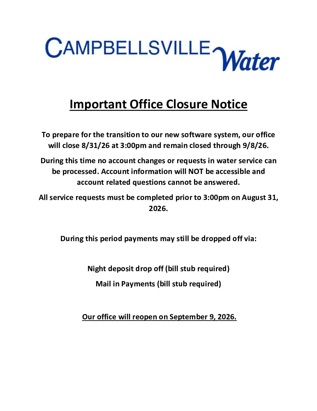 or picked up in person at City Hall located at 110 S. Columbia Ave, Campbellsville, KY.