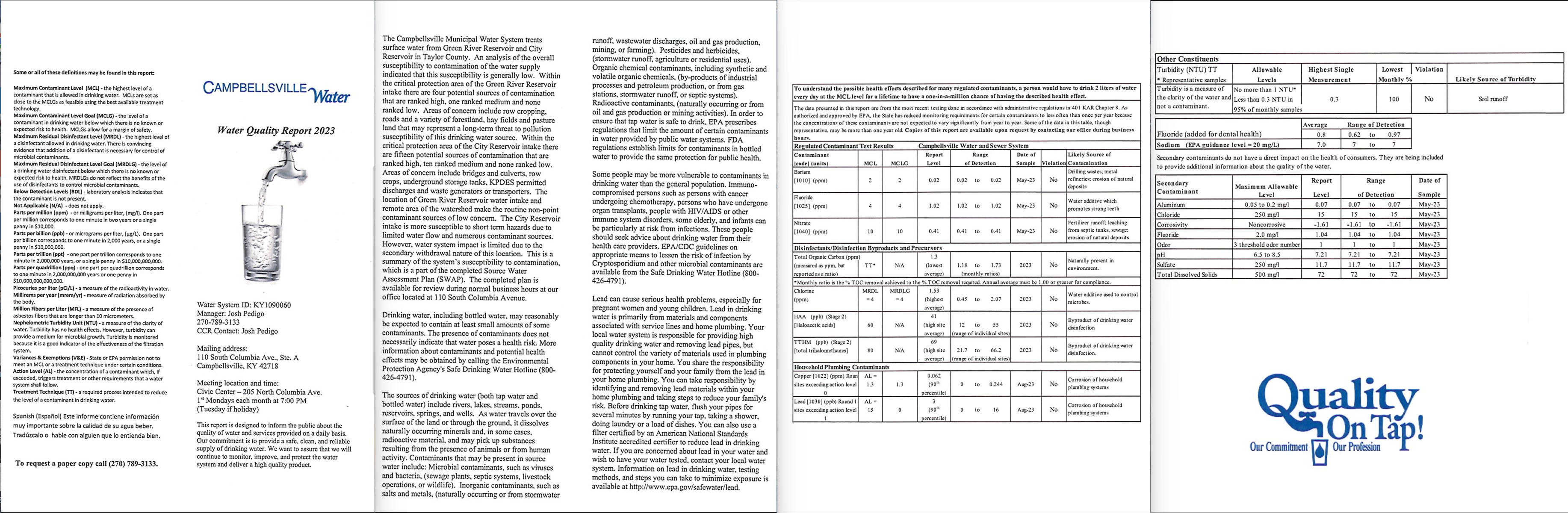 Here at Campbellsville Water we strive to have safe and clean drinking water. Our most recent water quality reports are hosted online and are available at: